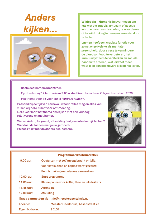 Bijeenkomst met thema “Humor” donderdag 12 februari 2026